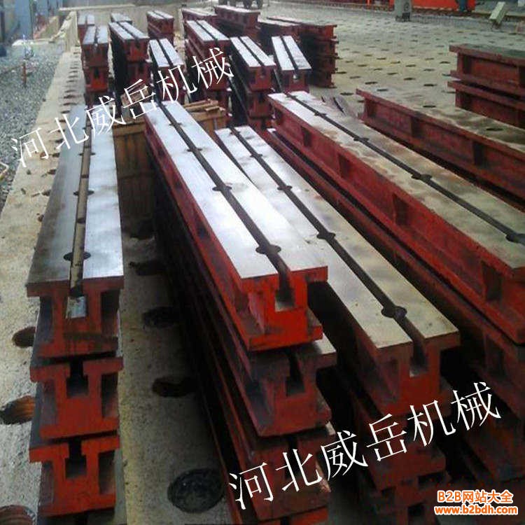 T型槽铸铁地轨根据设备的固定点来设计、拼接成铸梁平台,主要用于大型设备的装配、试验、铸铁和检验。 T型槽铸铁地轨的材质:度铸铁HT200-300,工作面硬度为HB170-240,经过两次人工处理(人工退火600度-700度和自然时效2-3年)使该产品的精度稳定,耐磨性能好。