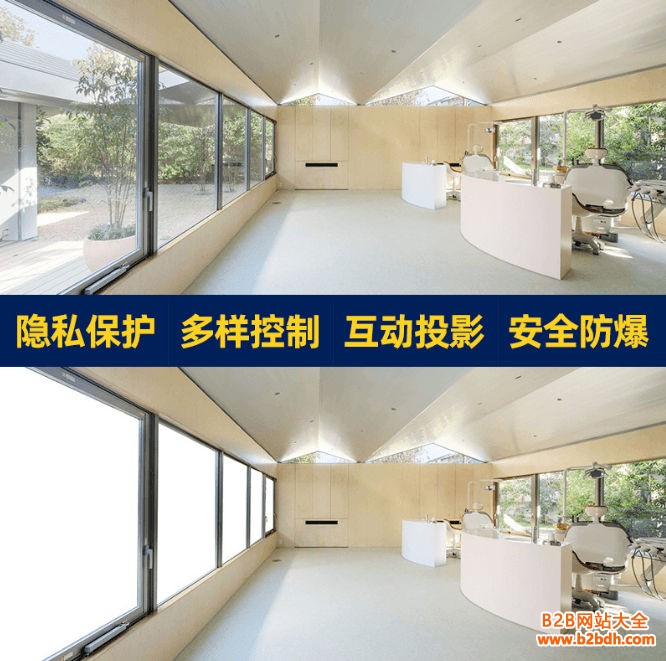 ★商务应用:办公区域、会议室、监控室隔断,通透玻璃设计缺乏商务保密性,采用调光玻璃可调节为全光照透明状态,需要时,只要轻轻按动遥控器,则可让整个区域从周围目光中模糊掉。